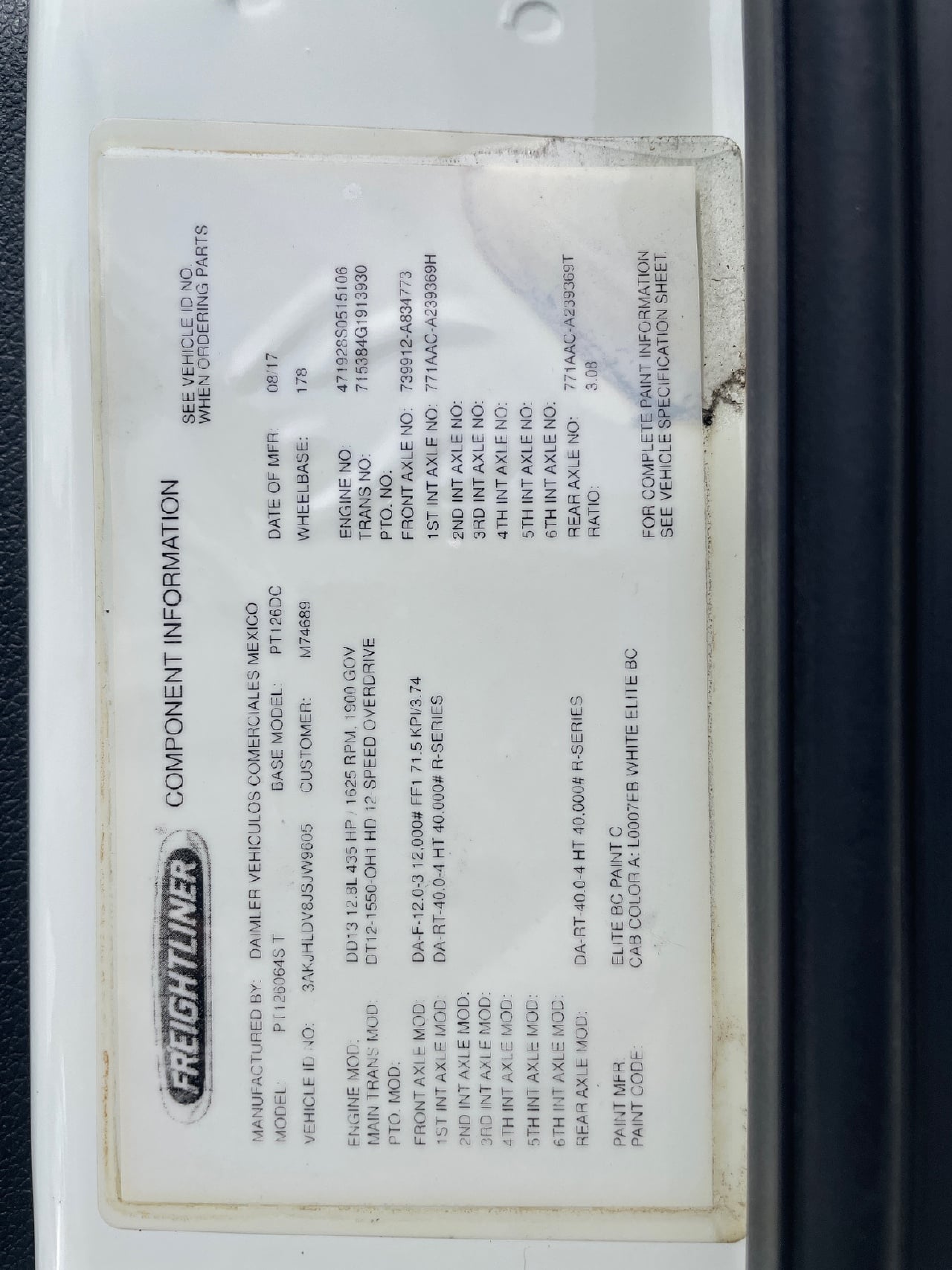 | Engine | Detroit DD13 435HP 6 Cyl |